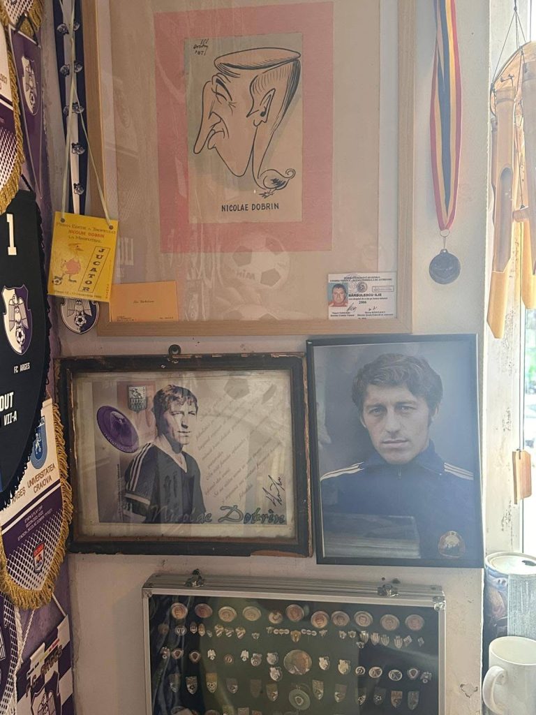Apartamentul lui Olteanu adăpostește sute de obiecte valoroase: fanioane, tricouri, programe de meci, fotografii și medalii care amintesc de momentele de glorie ale clubului și de legendarii săi jucători.