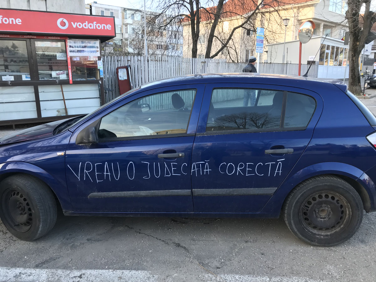 de vreme zace acolo maşina. De curând, şi un Opel Astra H a devenit „armă” de protest: lăsat chiar la treptele care duc spre Judecătorie, pe aceeaşi stradă a Eroilor, autovehiculul are scris pe el mesajul „Vreau o judecată corectă”. Visul, nu-i aşa, oricui ajunge în justiţie. Nu ştim dacă persoanele care procedează astfel au vreun câştig, dar ştim că, dacă exemplul lor va fi urmat, în curând nu vor mai fi locuri de parcare disponibile în zonă!