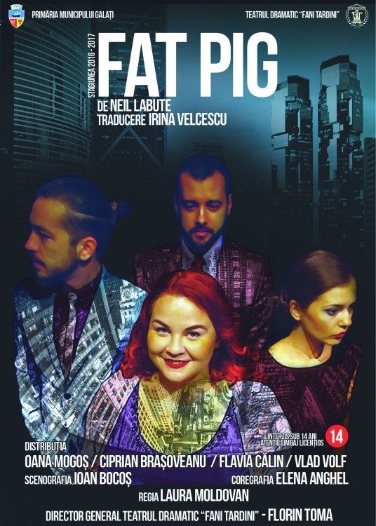Spectacolul „Fat Pig” al teatrului gălăţean „Fani Tardini” care a deschis ediţia 2017 a Festivalului Internaţional al Teatrului de Studio organizat la Piteşti de teatrul Al. DAVILA, spectacol regizat de Laura Moldovan este o replică de succes montării lui Cristi Juncu de la Nottara, tânăra regizoare reuşind ca fără a dezechilibra unitatea spectacolului, să pună mai toată greutatea pe umerii lui Helen cea atât de bine-făcută. Montarea dovedeşte unitate de concepţie dar oferă câmp de desfăşurare componentelor sale: decor, costume, lumini, coloana sonoră, interpreţi. Mai mult, montarea are avantajul de a fi uşor adaptabilă atât pe scene clasice cât şi în spaţii de joc neconvenţionale. Foarte inspirată concepţia scenografiei spectacolului semnată de Ioan Bocoş, scenografie care punctează clar sfera de desfăşurare a acţiunii prin multifuncţionalitatea detaliilor şi cu întreg ambientul doar în alb şi negru, aşa cum şi trebuie să fie judecata înr-o corporaţie de succes, cu angajaţi de succes… şi să nu uităm mişcarea scenică atât de corporatist-robotizat proiectată de Elena Anghel.